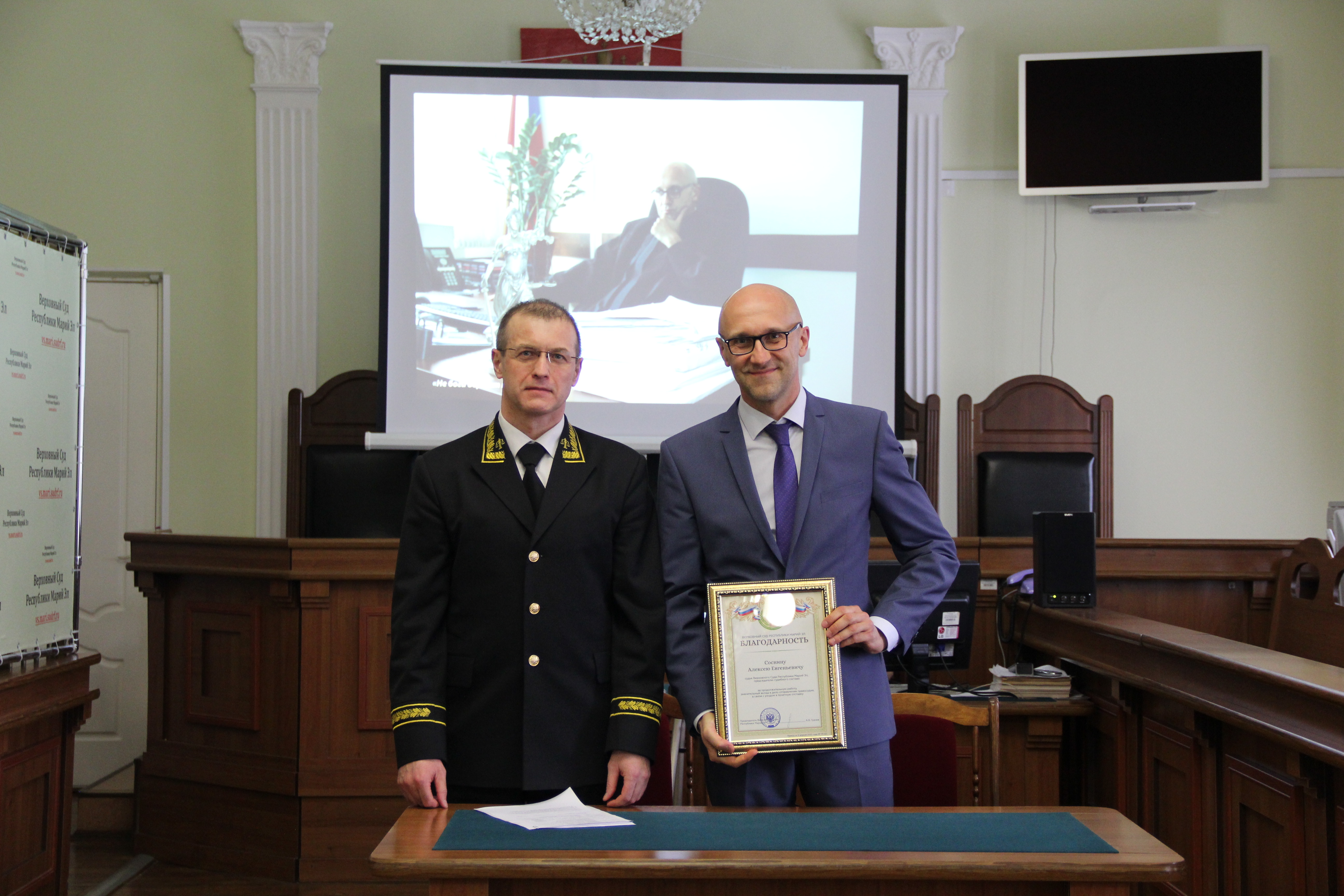 | Коллектив Верховного Суда Республики Марий Эл проводил в почетную отставку судью Алексея Евгеньевича Соснина | версия для печати |