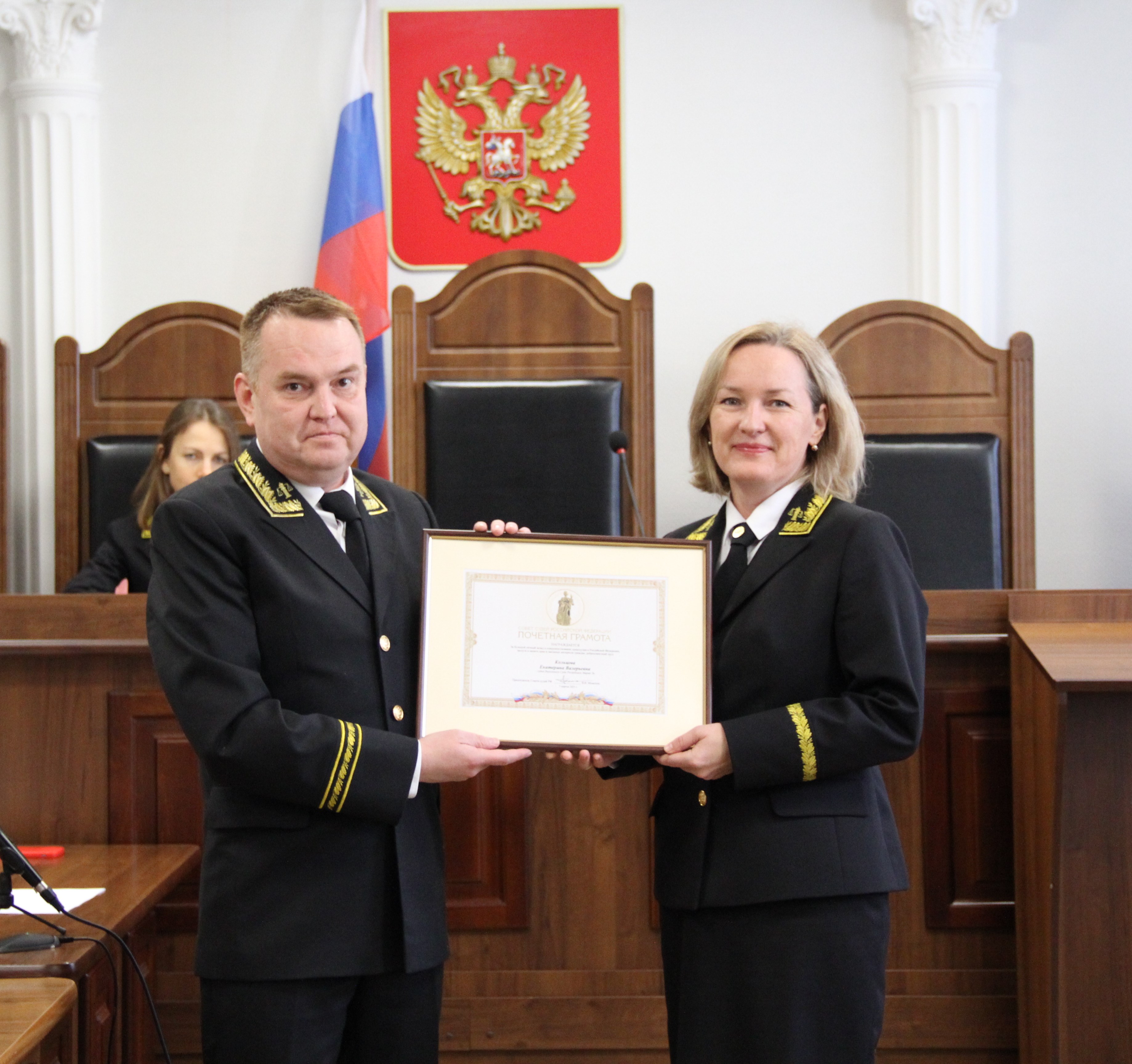 вклад в совершенствование правосудия в Российской Федерации, заслуги в защите