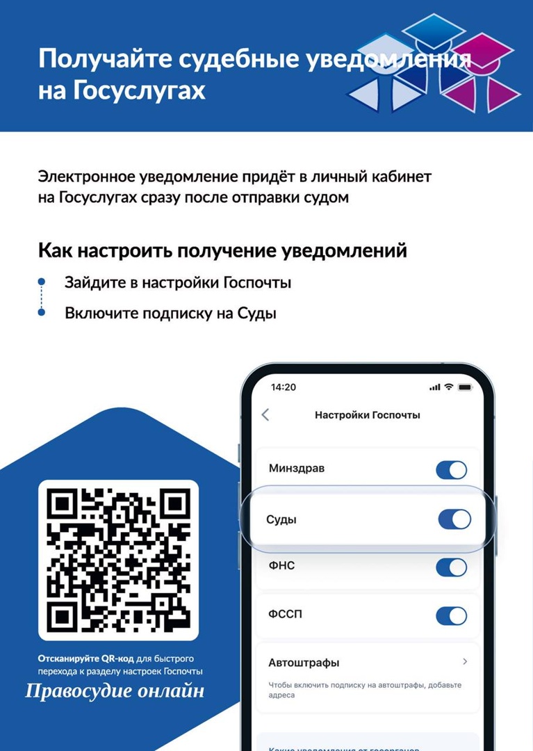 | Судебные уведомления можно получать на Едином портале государственных и муниципальных услуг | версия для печати |