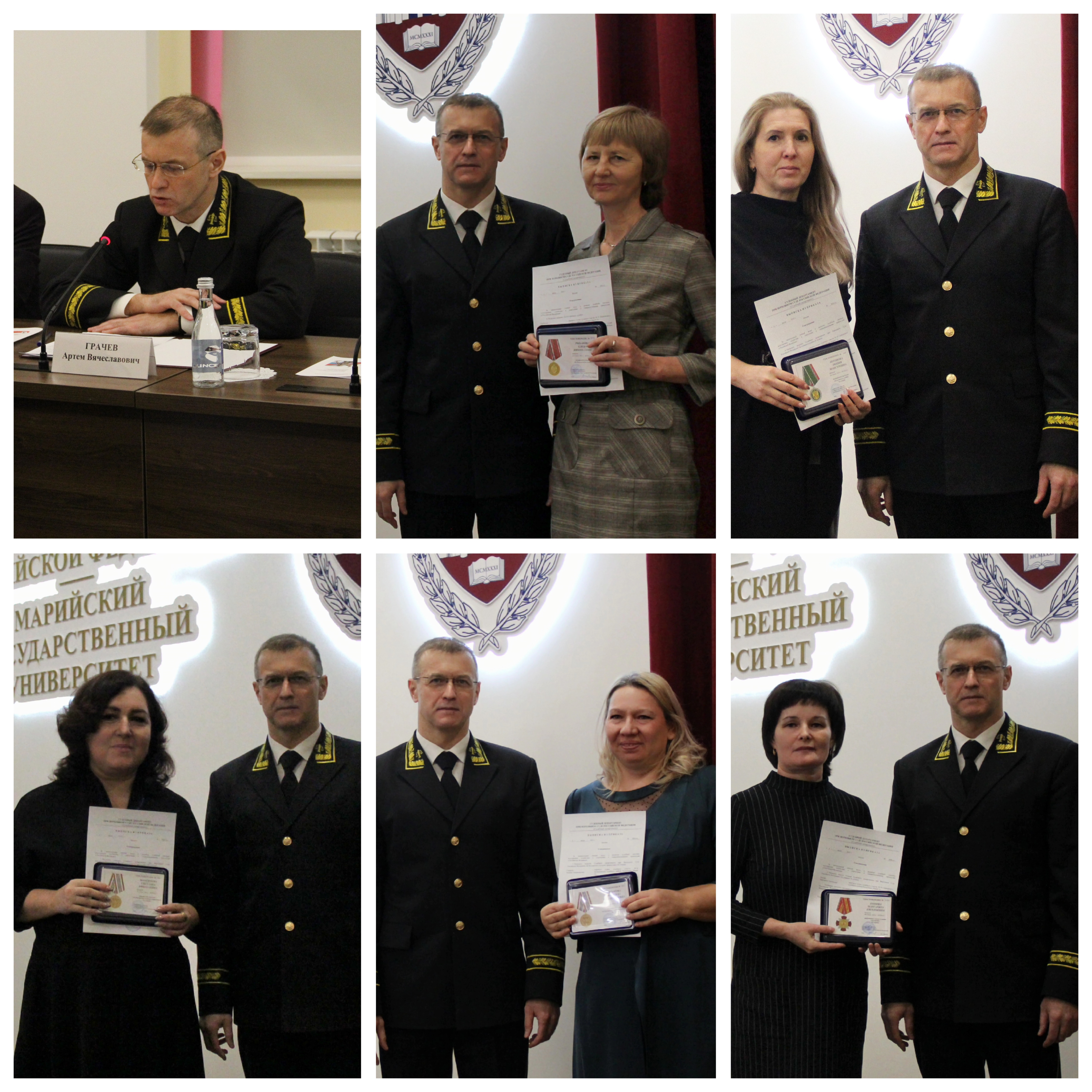 На торжественном мероприятии, посвященном 25-летию мировой юстиции в Республике Марий Эл, Председатель Верховного Суда Республики Марий Эл А.В. Грачев вручил награды мировым судьям. ![]() За большой вклад в совершенствование правосудия в Российской Федерации, заслуги в защите прав и законных интересов граждан, добросовестный труд Наградной знак Совета судей Российской Федерации «За служение правосудию» вручен Постоевой Светлане Владиславовне, мировому судье судебного участка № 6 Йошкар-Олинского судебного района Республики Марий Эл. За большой вклад в совершенствование правосудия в Российской Федерации, заслуги в защите прав и законных интересов граждан, добросовестный труд Благодарность Совета судей Российской Федерации объявлена Паршинцевой Татьяне Анатольевне, мировому судье судебного участка № 13 Йошкар-Олинского судебного района Республики Марий Эл. За значительный личный вклад в развитие судебной системы, всестороннее содействие в укреплении и совершенствовании правосудия в Российской Федерации Знаком отличия Судебного департамента при Верховном Суде Российской Федерации «За усердие» II степени награждена Попова Маргарита Евгеньевна, мировой судья судебного участка № 35 Сернурского судебного района Республики Марий Эл. За значительный личный вклад в развитие судебной системы, всестороннее содействие в укреплении и совершенствовании правосудия в Российской Федерации Медалью Судебного департамента при Верховном Суде Российской Федерации «За безупречное служение правосудию» III степени награждены: - Мамонтова Светлана Николаевна, мировой судья судебного участка № 17 Волжского судебного района Республики Марий Эл, - Сидорова Надежда Владимировна, мировой судья судебного участка № 26 Медведевского судебного района Республики Марий Эл. За значительный личный вклад в развитие судебной системы, всестороннее содействие в укреплении и совершенствовании правосудия в Российской Федерации Медалью Судебного департамента при Верховном Суде Российской Федерации «За отличие в службе» II степени награждена Антонова Люция Мансуровна, мировой судья судебного участка № 34 Сернурского судебного района Республики Марий Эл. За значительный личный вклад в развитие судебной системы, всестороннее содействие в укреплении и совершенствовании правосудия в Российской Федерации Медалью Судебного департамента при Верховном Суде Российской Федерации «За безупречную службу» награждена Рыбакова Елена Николаевна, мировой судья судебного участка № 32 Моркинского судебного района Республики Марий Эл. За большой личный вклад в развитие судебной системы, всестороннее содействие в укреплении и совершенствовании правосудия в Российской Федерации Почетной грамотой Судебного департамента при Верховном Суде Российской Федерации награждены:- Волкова Татьяна Александровна, мировой судья судебного участка № 36 Сернурского судебного района Республики Марий Эл, - Носкова Анна Николаевна, мировой судья судебного участка № 18 Волжского судебного района Республики Марий Эл. В связи с 25-летием со дня образования мировой юстиции в Республике Марий Эл, за существенный вклад в отправление правосудия, обеспечение прав и свобод граждан Почетной грамотой Верховного Суда Республики Марий Эл награждены: - Подоплелова Светлана Викторов