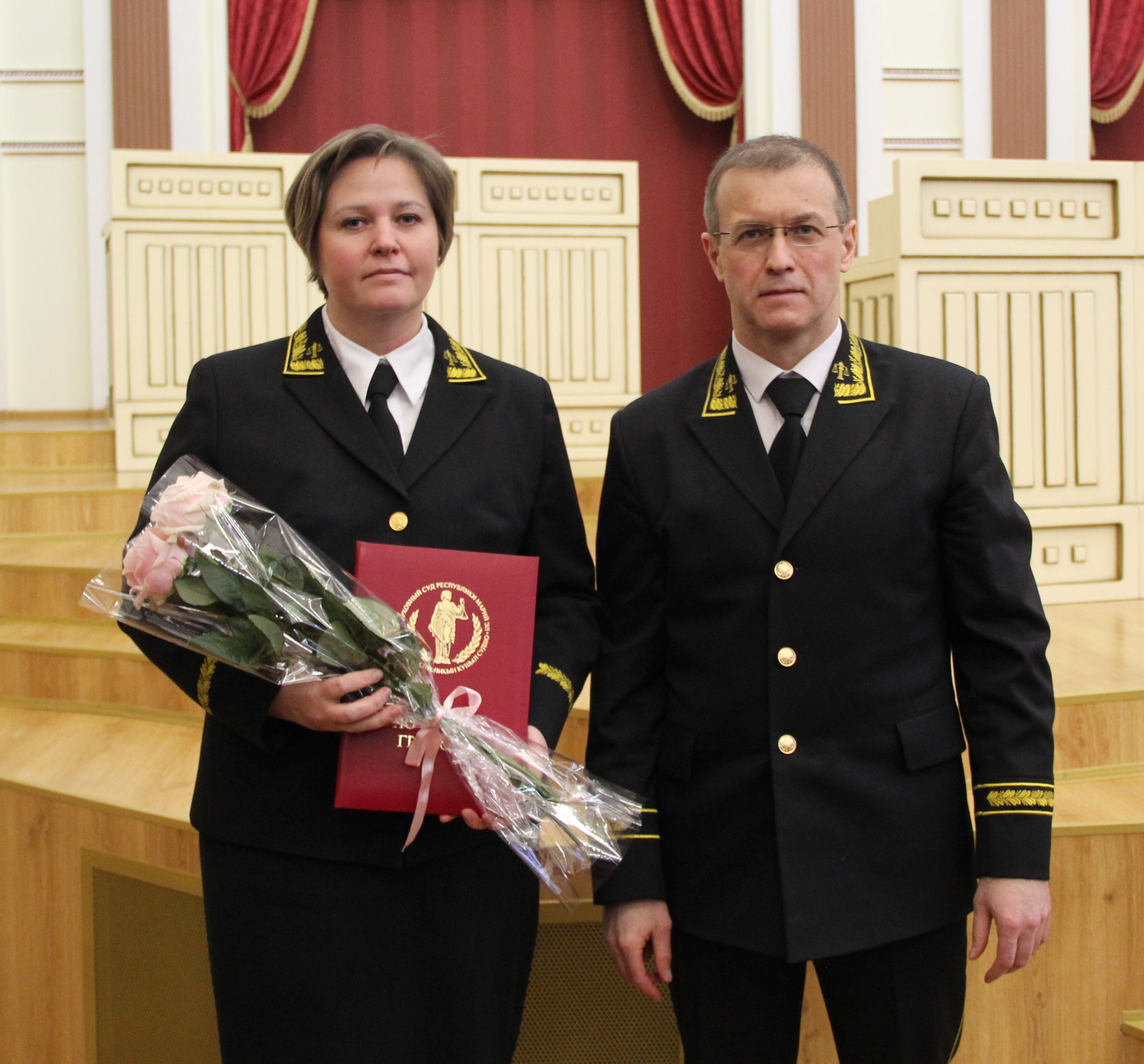 По итогам работы судов общей юрисдикции состоялось награждение судей. За значительный личный вклад в развитие судебной системы, всестороннее содействие в укреплении и совершенствовании правосудия в Российской Федерации медалью Судебного департамента при Верховном Суде Российской Федерации « За отличие в службе» II степени награждена мировой судья судебного участка № 23 Звениговского судебного района Республики Марий Эл Мельникова Кларита Борисовна. - судья Верховного Суда Республики Марий Эл Алимгулова Кира Витальевна, - судья Йошкар-Олинского городского суда Республики Марий Эл Чеботкина Марина Вячеславовна, - судья Медведевского районного суда Республики Марий Эл Яковлев Артем Сергеевич, - мировой судья судебного участка № 15 Волжского судебного района Республики Марий Эл Габдракипова Эльвира Раисовна. За образцовое исполнение служебных обязанностей, внесение значительного вклада в осуществление правосудия Благодарность Председателя Верховного Суда Республики Марий Эл объявлена: - судье Йошкар-Олинского городского суда Республики Марий Эл Анисимовой Наталье Германовне, - судье Советского районного суда Республики Марий Эл Коньковой Екатерине Владиславовне, - судье Медведевского районного суда Республики Марий Эл Бахтиной Юлии Владимировне, - мировому судье судебного участка № 39 Советского судебного района Республики Марий Эл Разяпову Марату Ильясовичу, - мировому судье судебного участка № 31 Моркинского судебного района Республики Марий Эл Майковой Анастасии Сергеевне. |